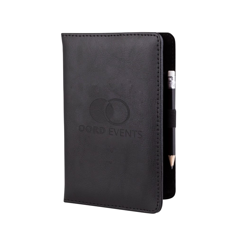 Scorekartenmappe aus Leder mit Prägung, inkl. schwarzem Bleistift mit Radiergummi, Format 11 x 17,5 cm